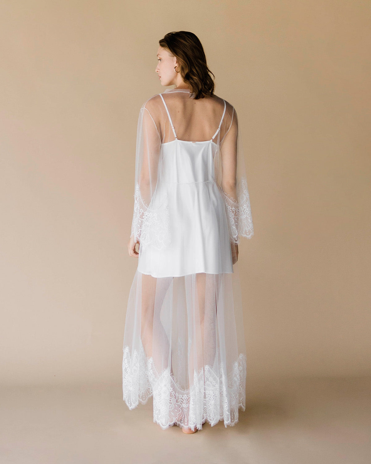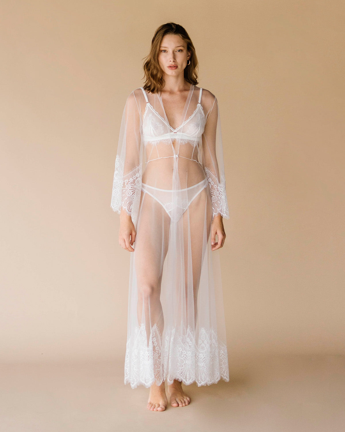 Bata maxi con encaje en las mangas y la parte de abajo.